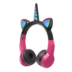 Cuffie per bambini senza fili unicorno orecchie da gatto carine colorate cuffie Stereo musicali per ragazze con cuffie da gioco viola chiaro